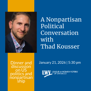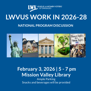 Join LWVSD members for discussion about the critical issues facing our democracy