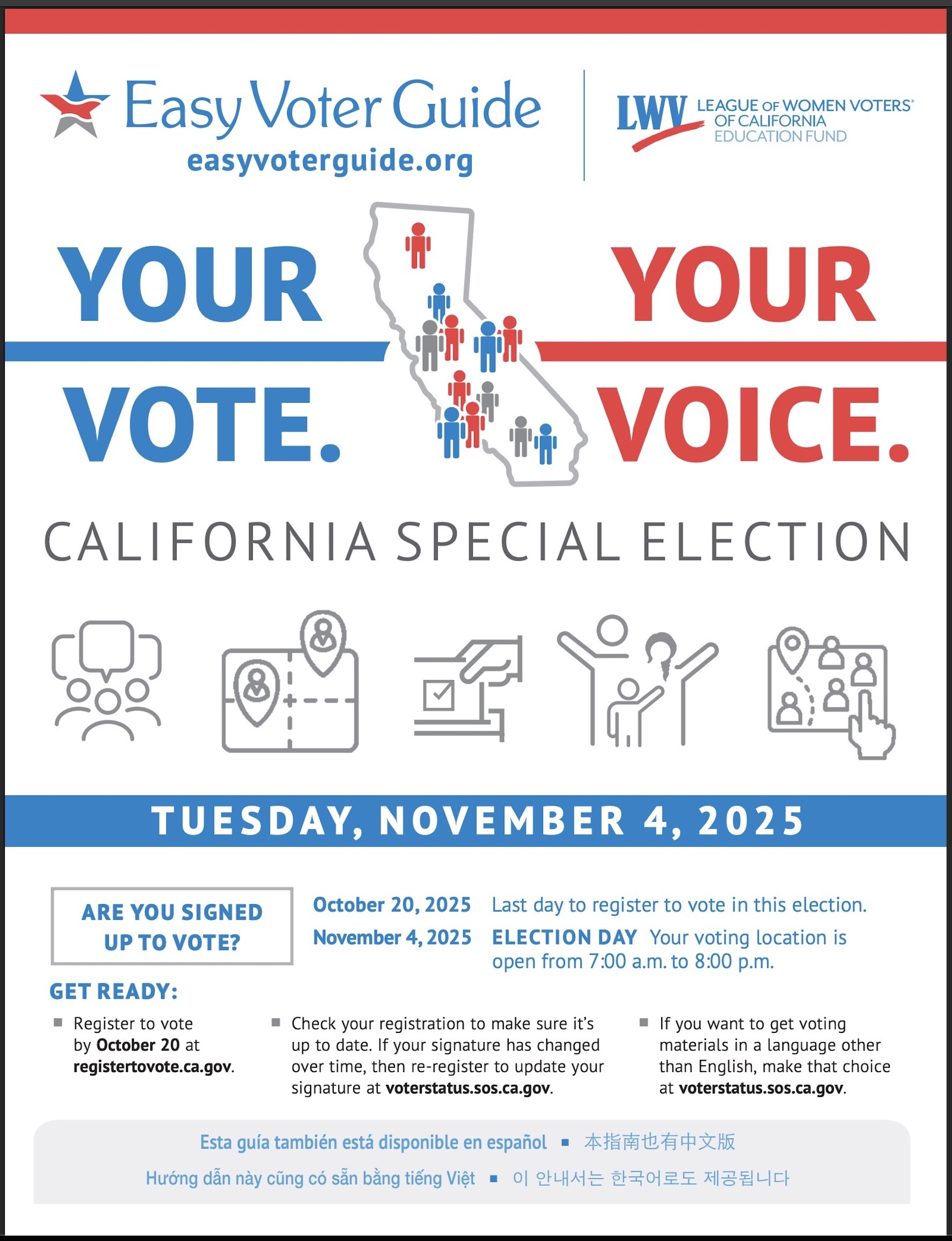San Diego County Registrar of Voters office at 5600 Overland Ave, any library, Department of Motor Vehicles offices, or post office. The deadline to register is the 15th calendar day before the election.